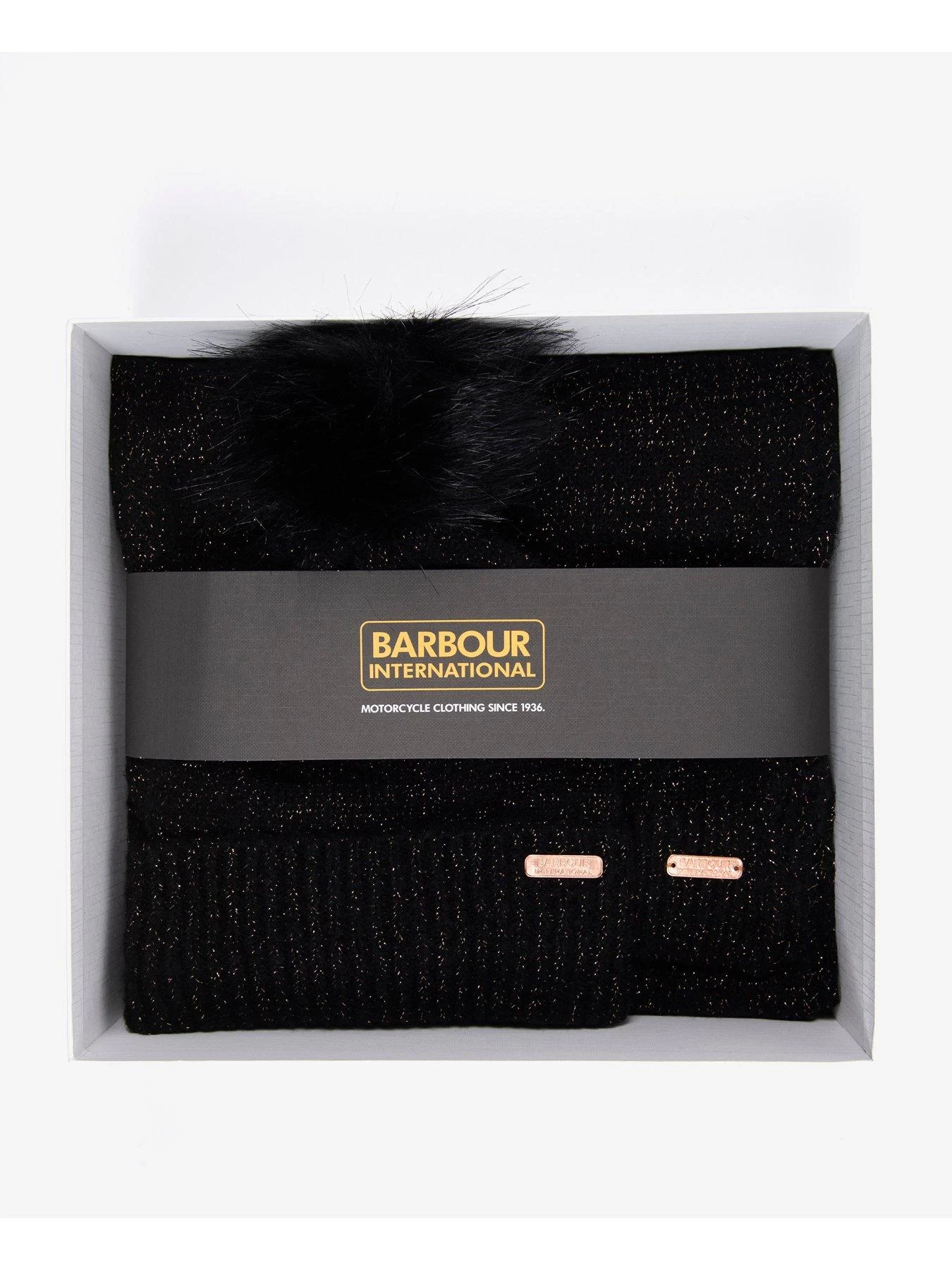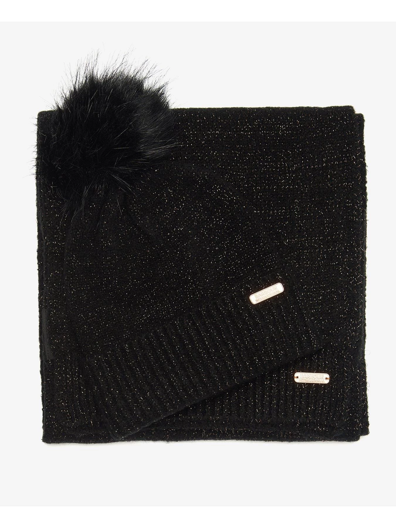 Barbour International Sparkle Beanie & Scarf Gift Set – Black